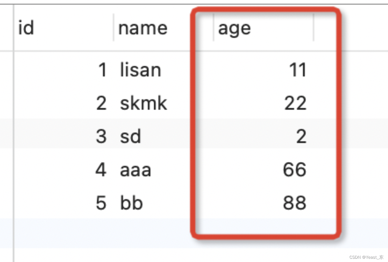 查看mysql的源数据,我们的搜索sql为 select age from user;