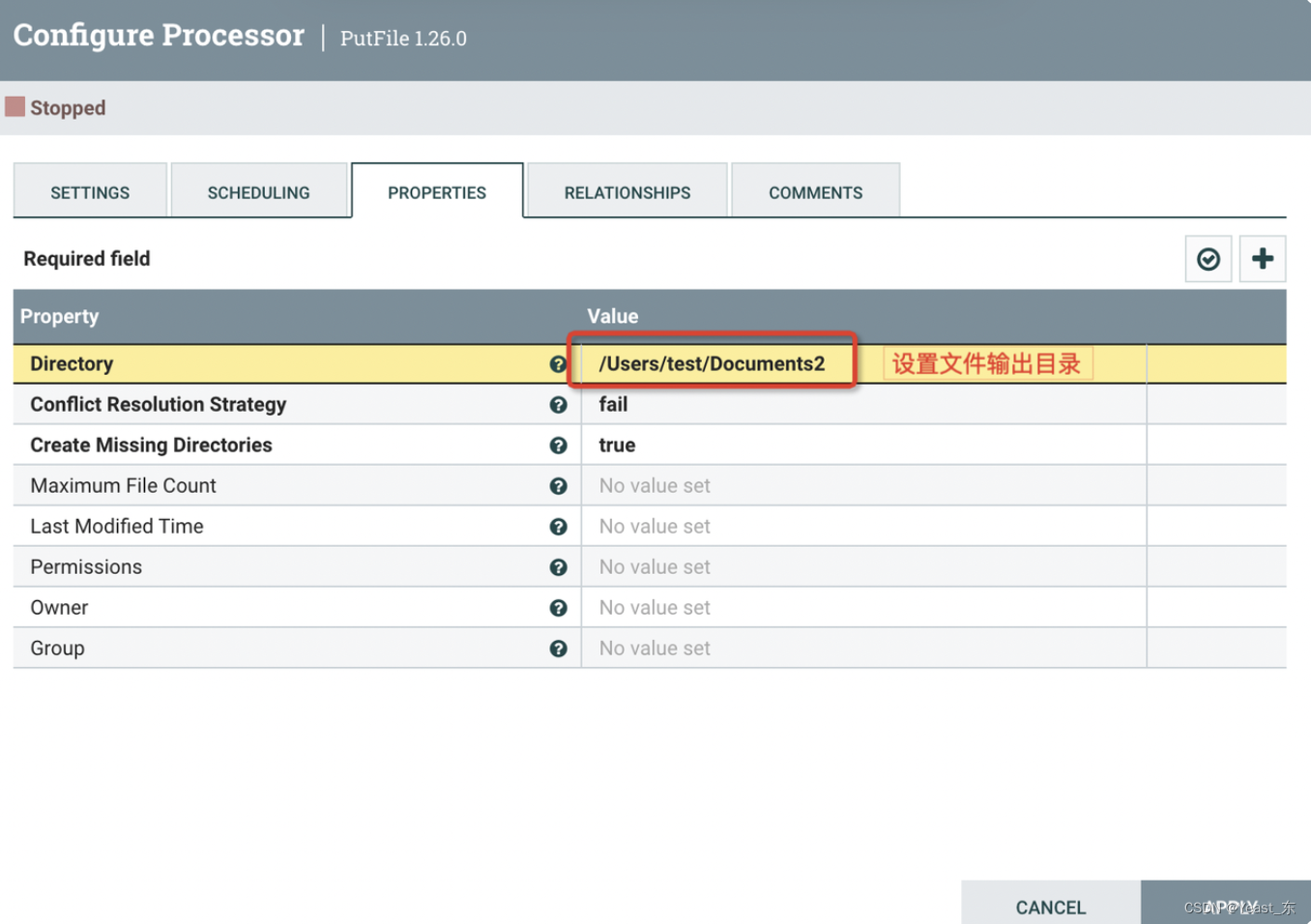 点击工具栏处的Processor,拖拽到工作区,搜索处理器PutFile