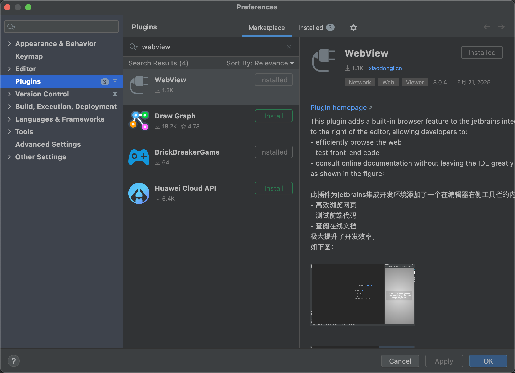 <description>这个插件可以让我们在IDEA中方便使用浏览器,让我们程序员开发更便捷,更快速,同时也能让我们方便浏览网页</description>