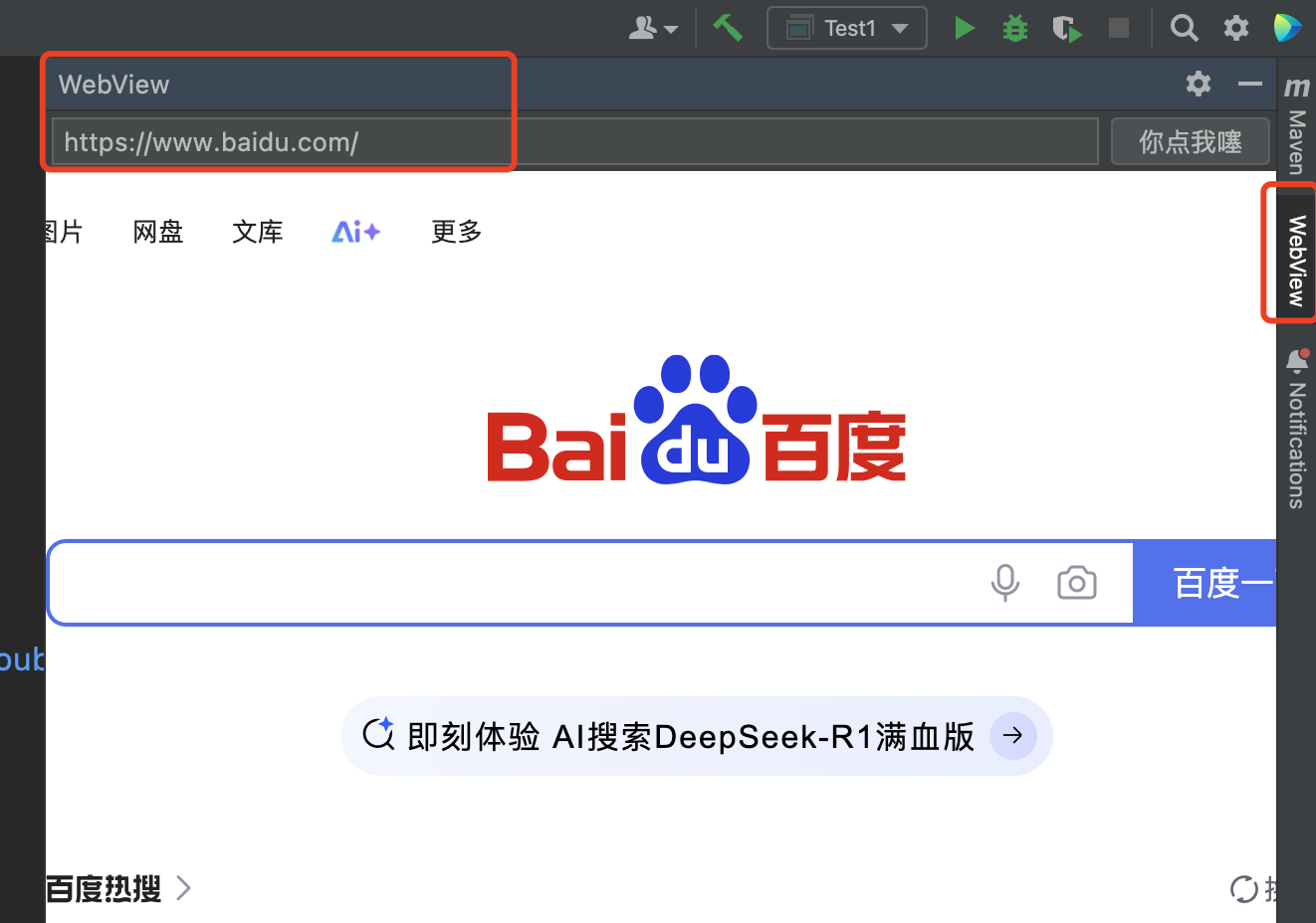 启动之后会打开一个新的IDEA窗口,找到我们的右边侧栏种WebView按钮点击